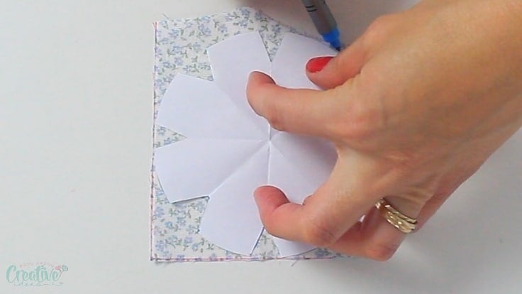 - Place the pincushion pattern on the pincushion fabric, trace it onto the fabric and cut out.