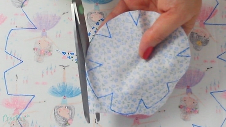 - Place the lid pattern on the lid fabric, trace it onto the fabric and cut out.