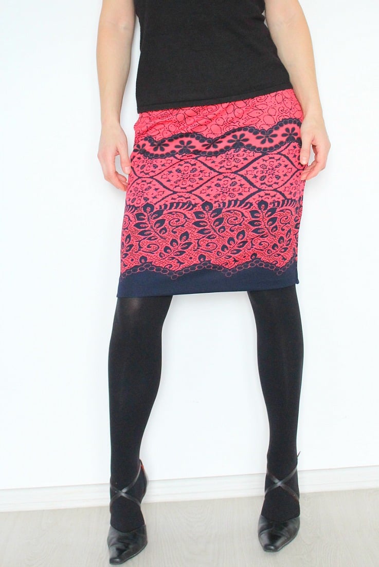 - Experiment with different fabric choices to create unique looks for this skirt. You can use a solid for the waistband for added contrast.