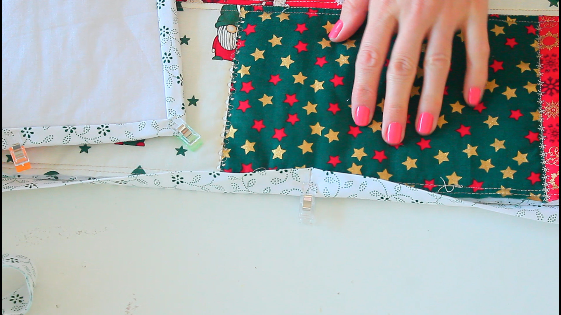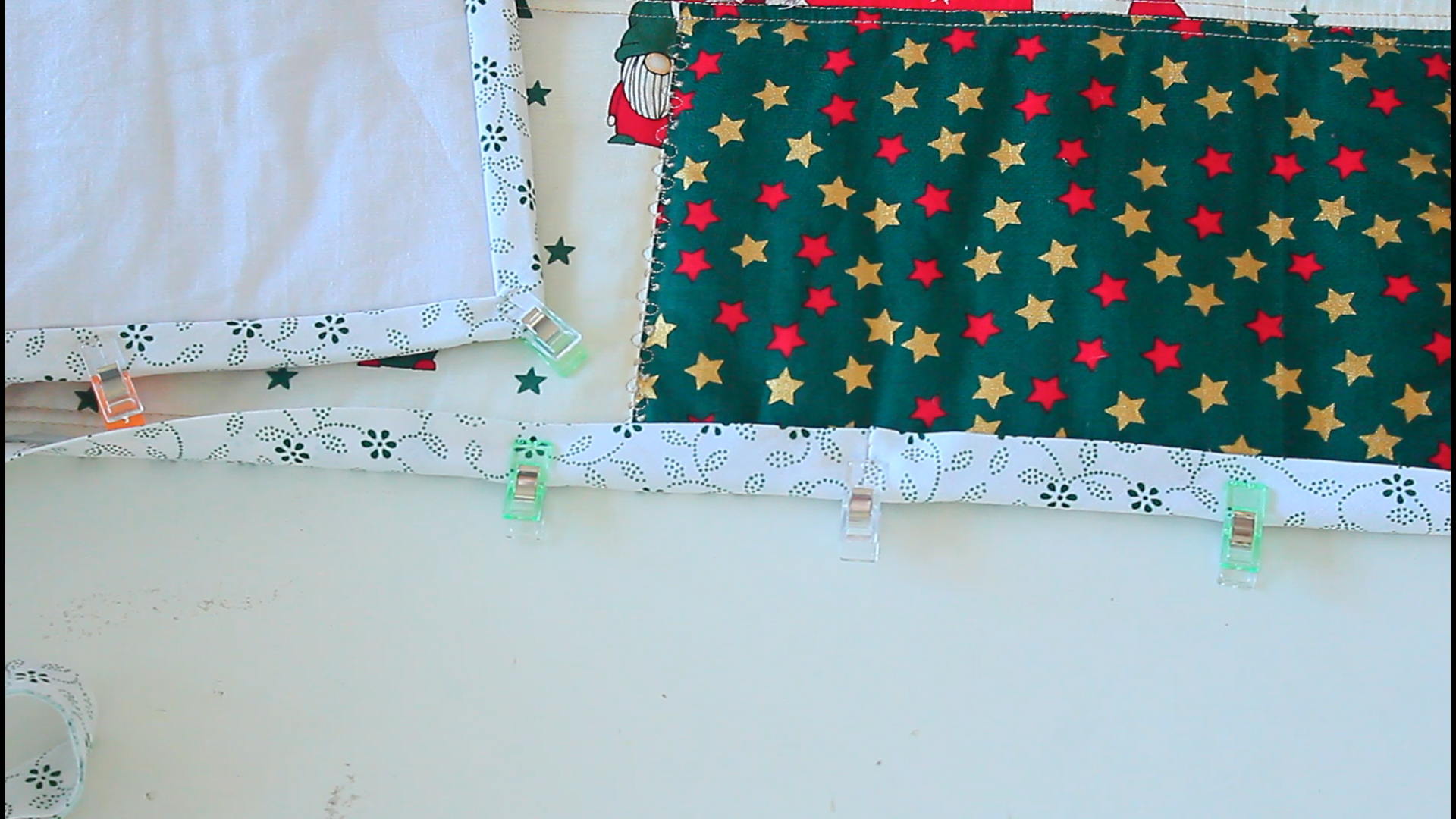 - Fold the bias binding over the quilt edge and clip in place with wonder clips.
