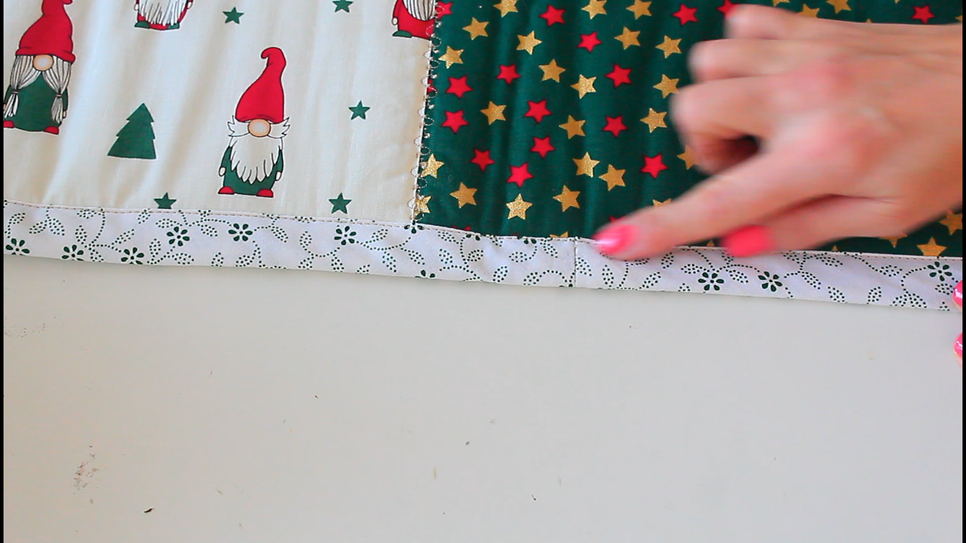 - Stitch in the ditch to finish attaching the binding to the quilt onto the other side of the quilt. In this tutorial you’ll find a little trick I use to sew the perfect stitch in the ditch.