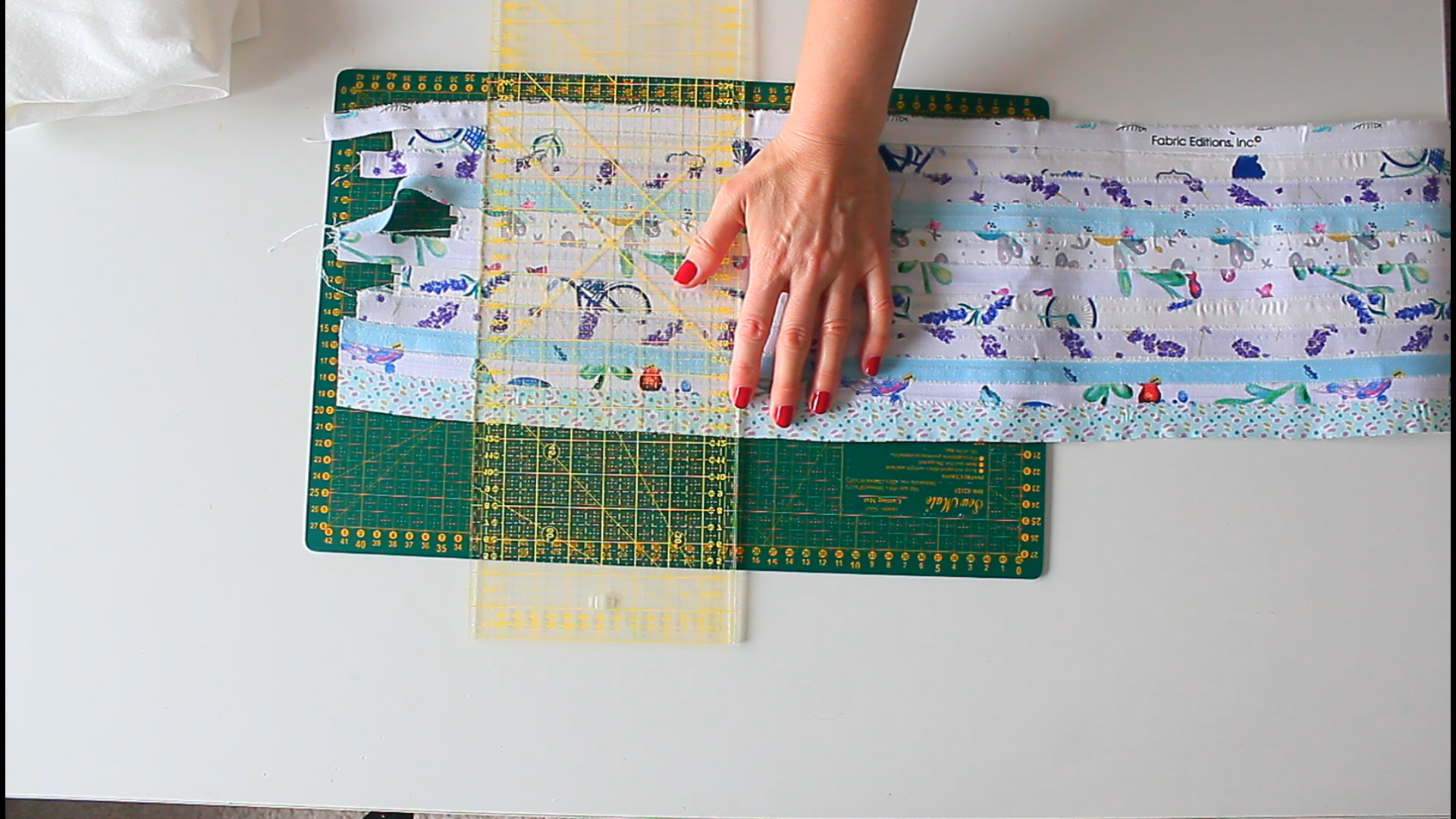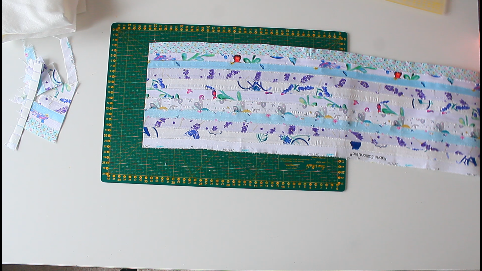 - Butt the long edges together as neatly as possible. It helps to place the entire length of the strips on the ironing surface.