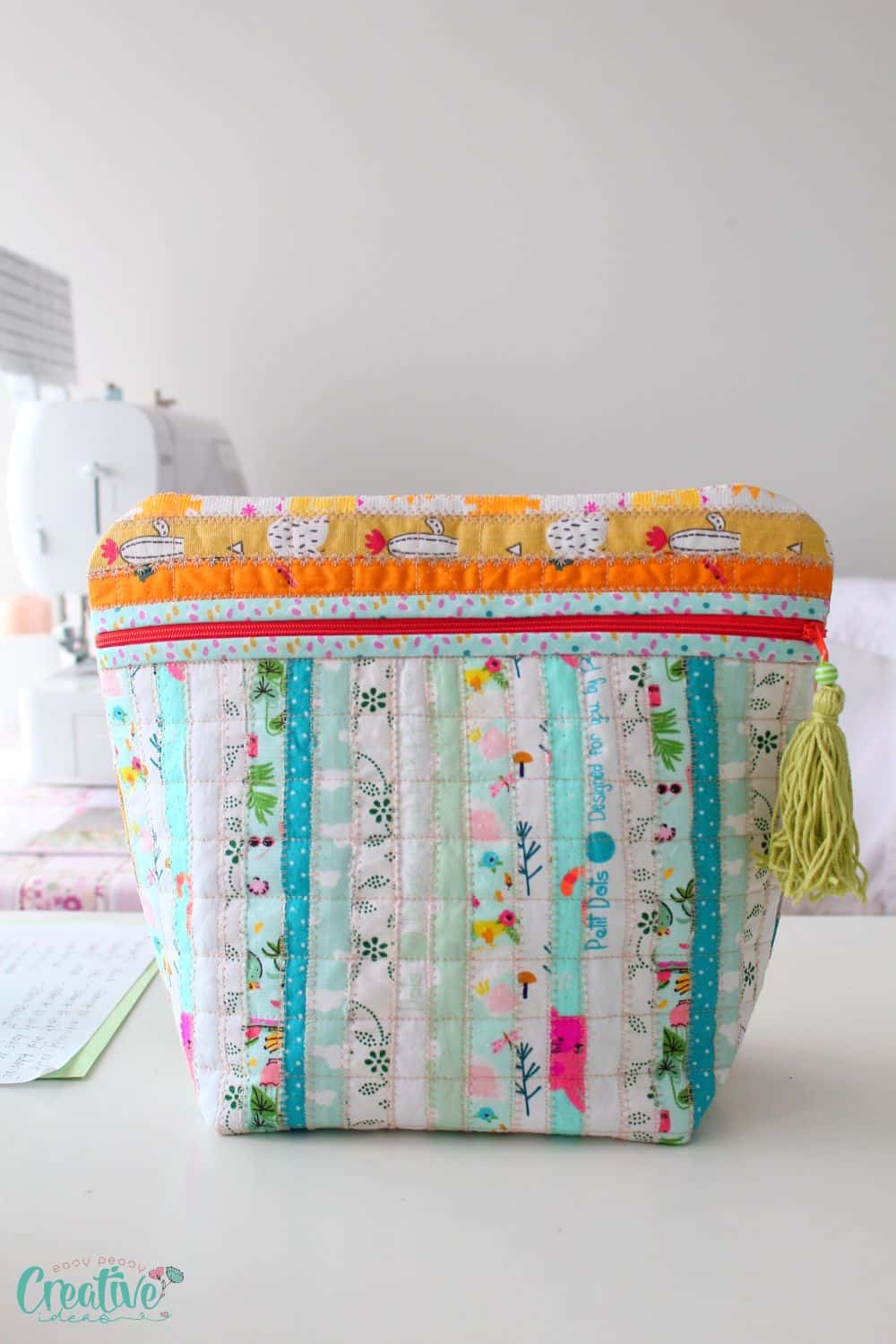 - Quilted toiletry bag with selvage fabric