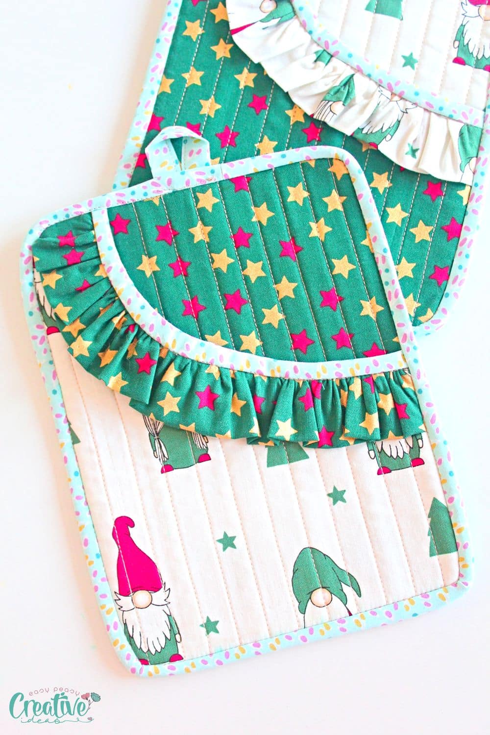 - Rectangular pocket potholder with ruffles