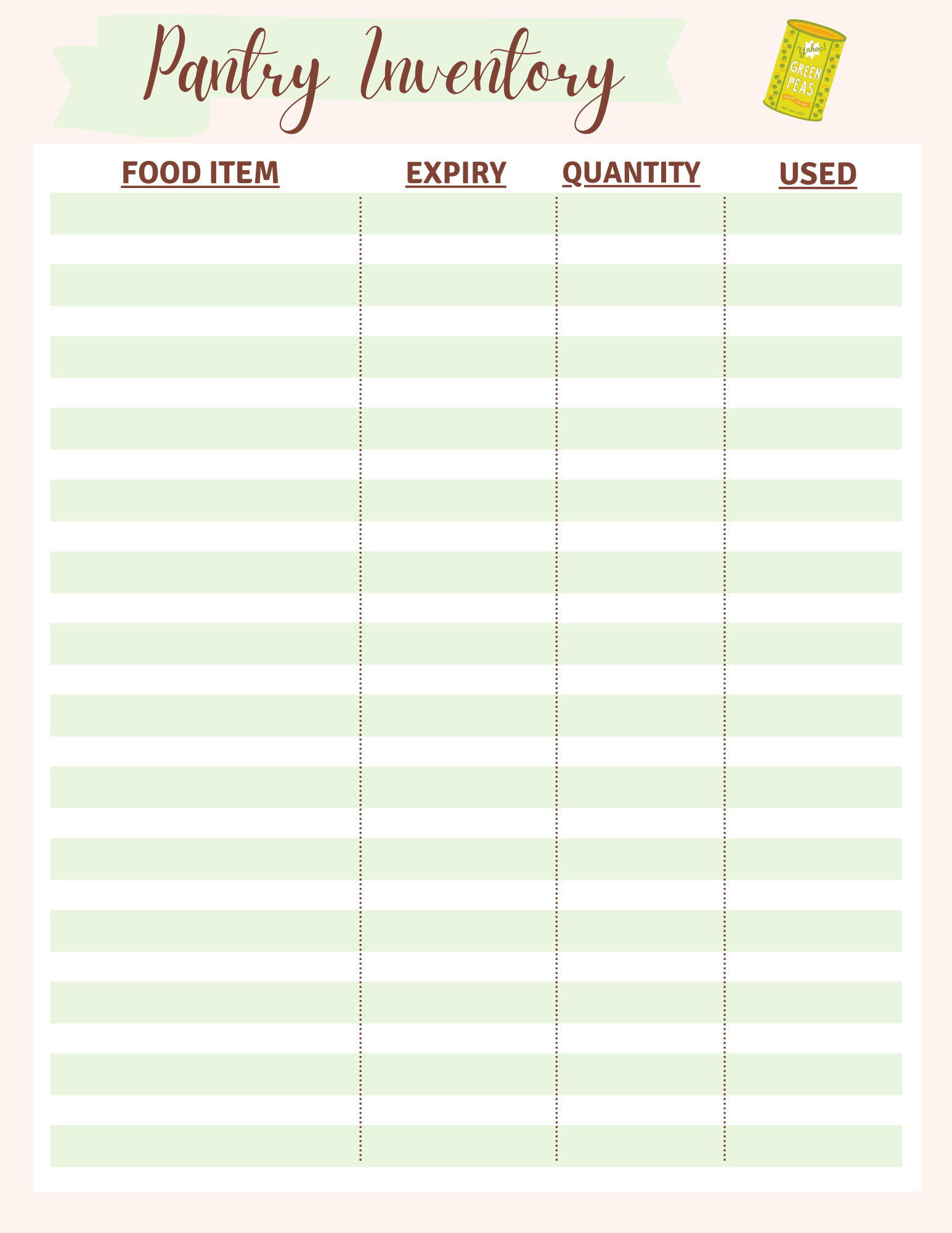 - Quantity. Add a check mark or number for each quantity of the same item you store in your pantry or refrigerator.