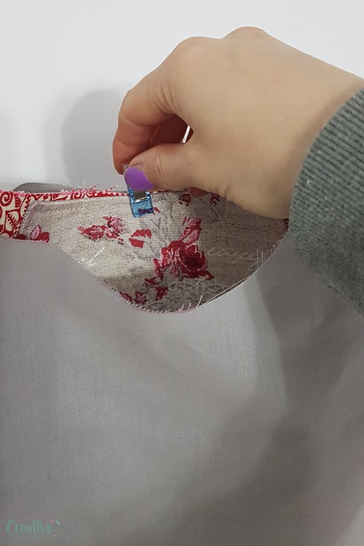 - Return the lining to its original position, match the side seams and clip or pin the bag and the lining around the top.