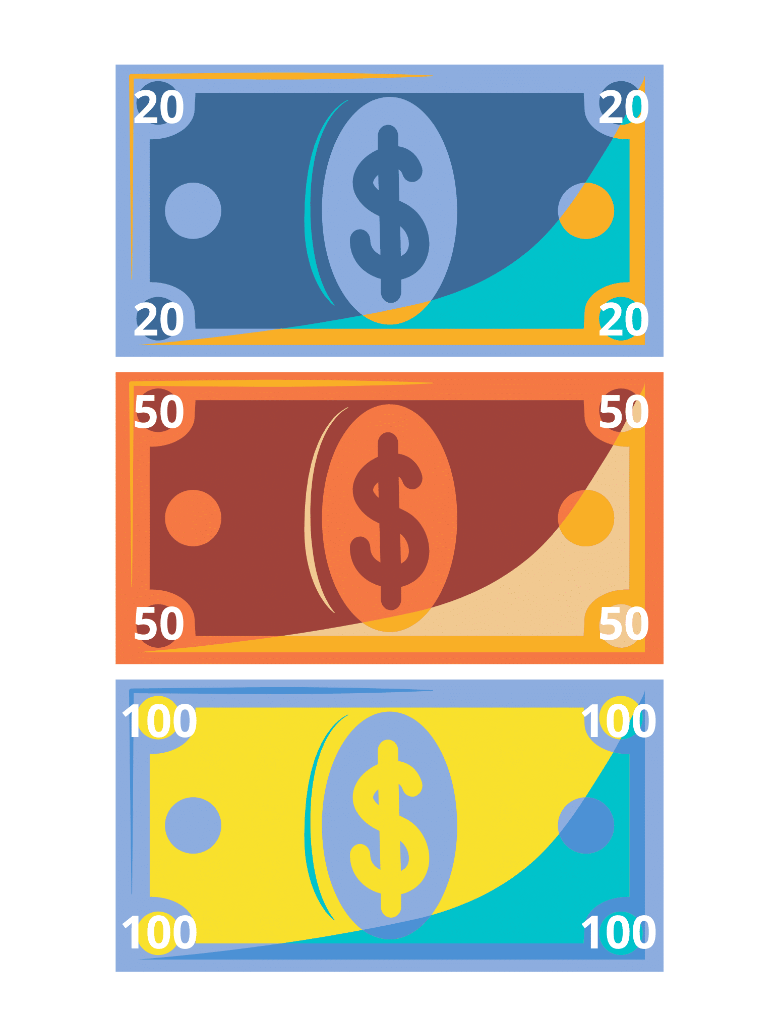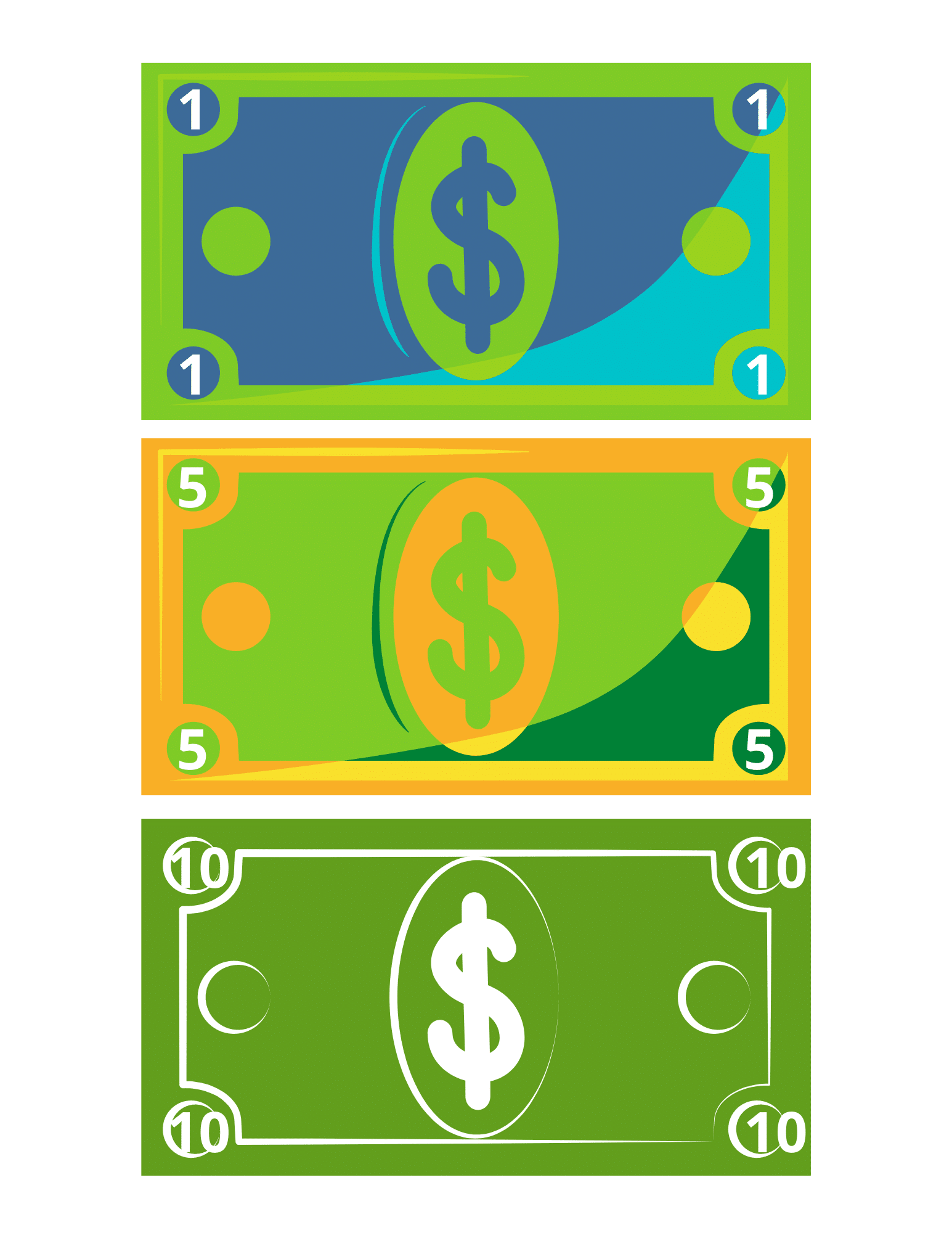 Make sure all your child’s customers can pay with the help of printable play money. The pack comes with six different bills: 1, 5, 10, 20, 50, and 100.