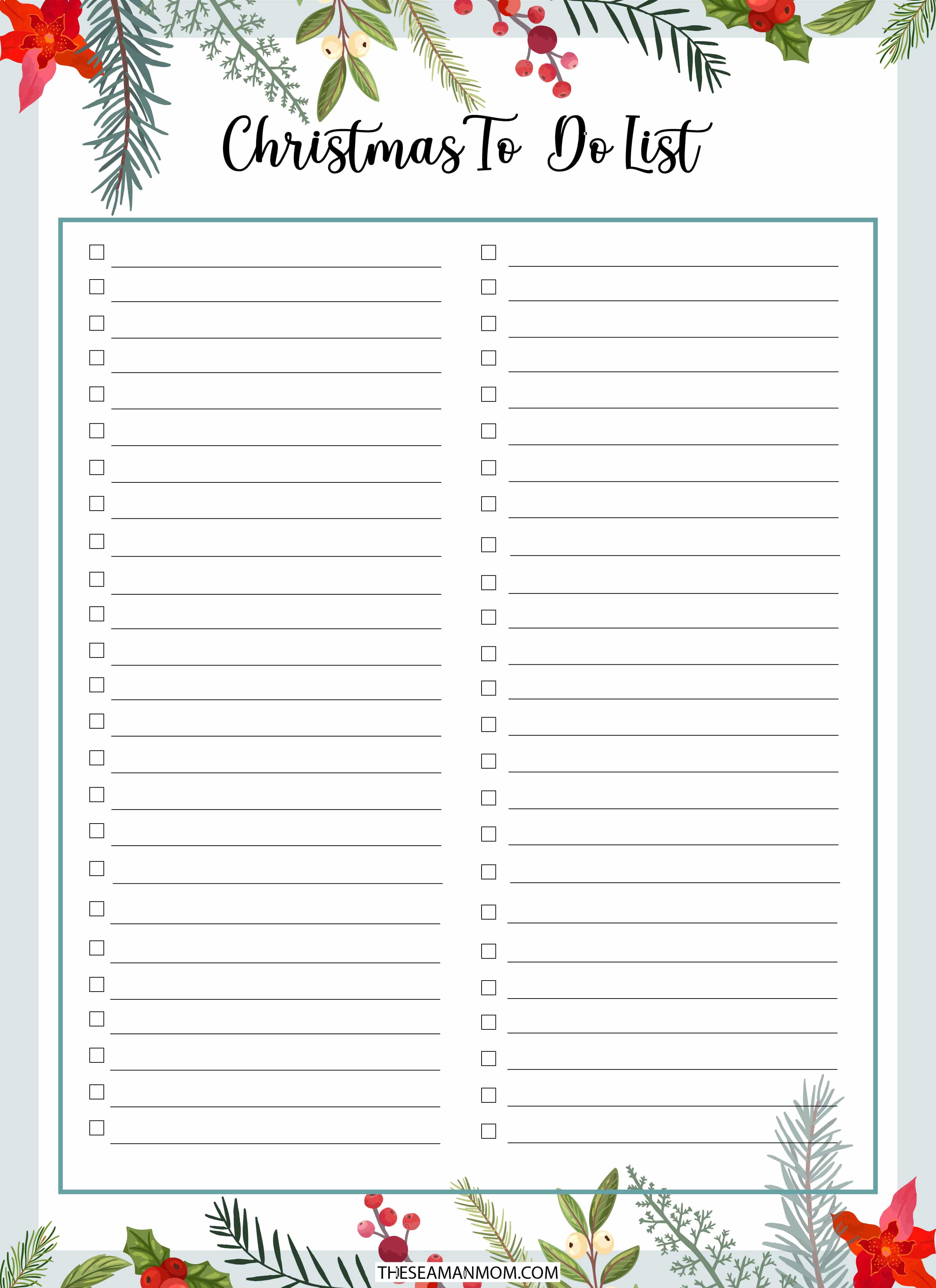 Never forget a holiday task as you make your way toward Christmas Day by keeping track of everything you need to do each day on a printable to-do list. Write down the tasks for the day, then check the box next to each task as you finish it.