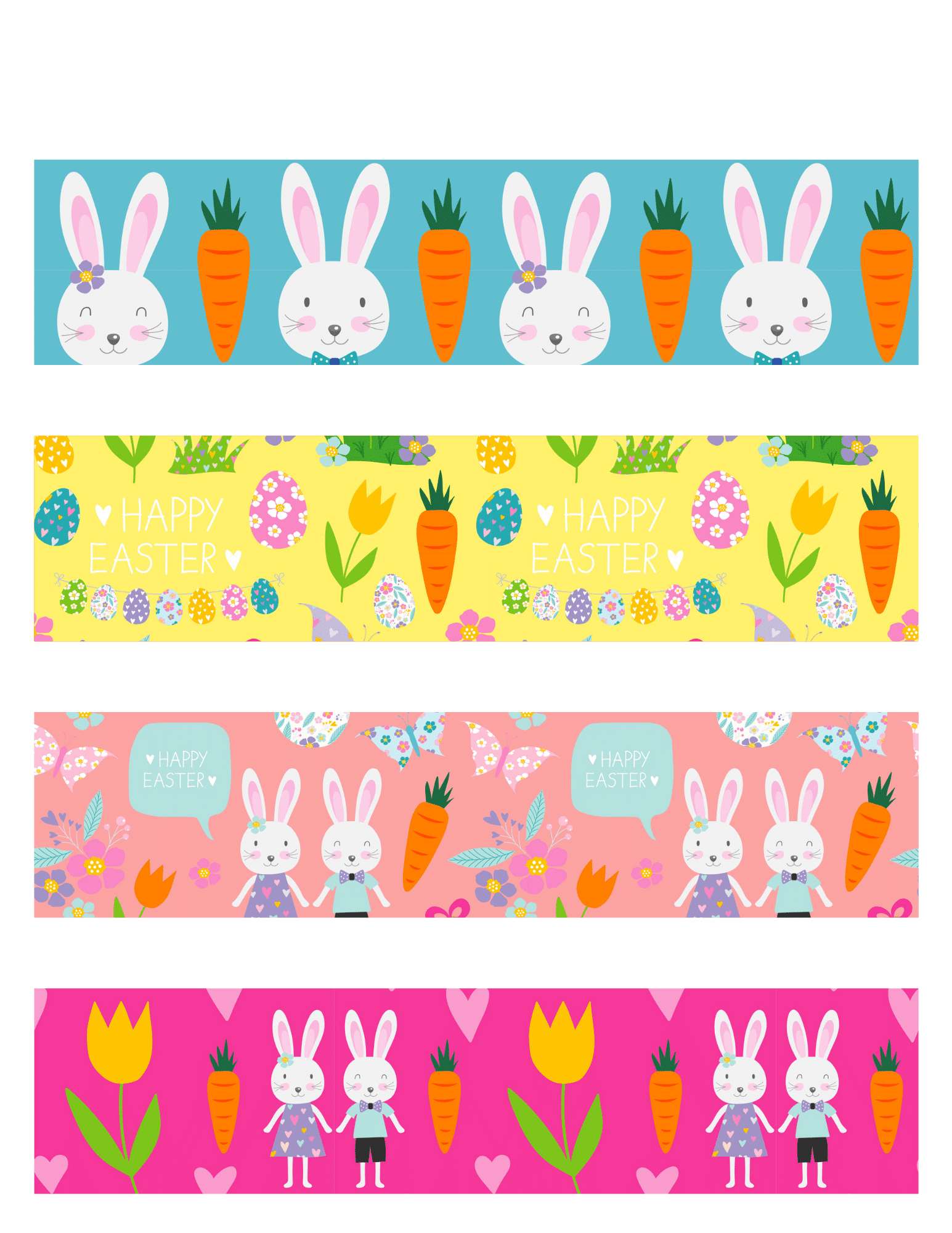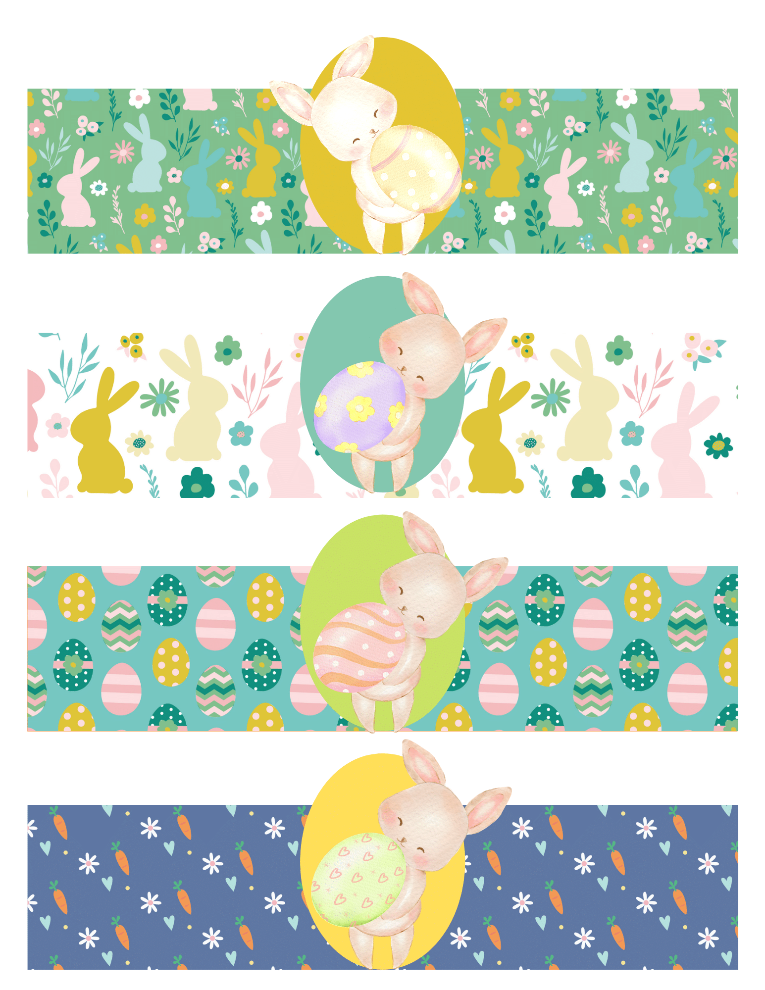 - Watercolor designs with four different backgrounds, each featuring a cute bunny holding an Easter egg