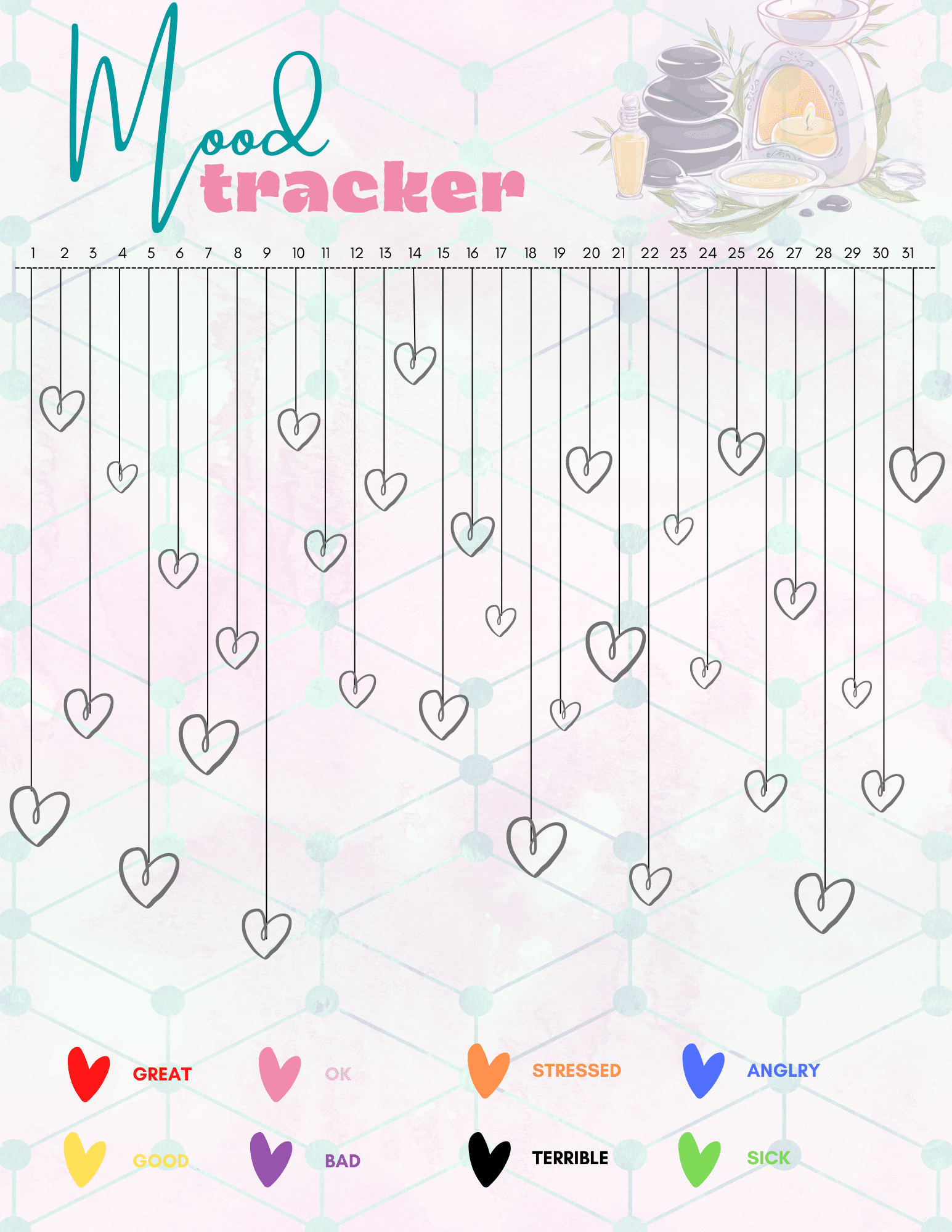 - Mood tracker. Use a mood tracker to keep a record of your daily mood, giving you a chance to see when you’ve been happy, stressed, and angry.