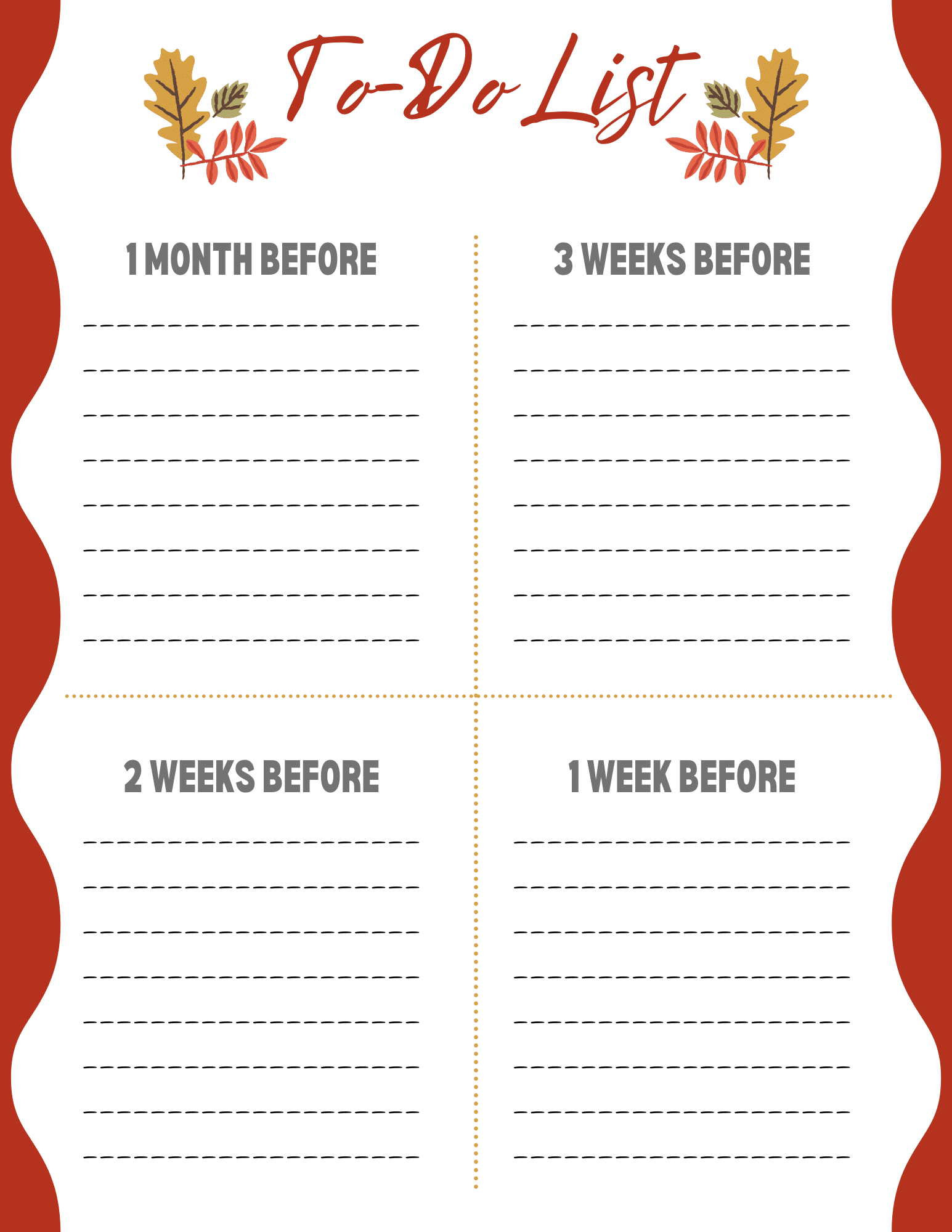 It does not have to be that way, especially with this planner. You can break down your to-do list by 1 month before, 3 weeks before, 2 weeks before, and 1 week before.