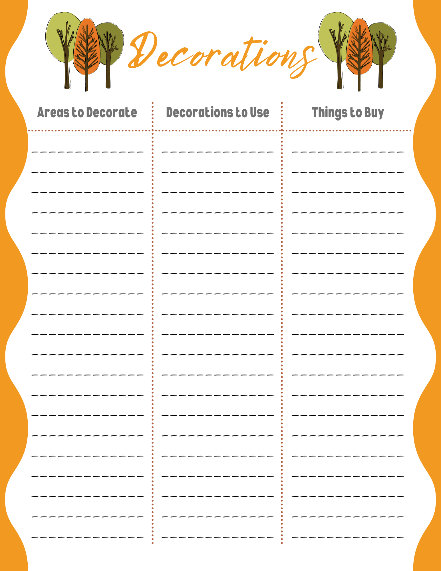 The planner has a spot to jot down the areas you want to decorate, the decorations you plan to use, and any new décor items you plan to purchase.