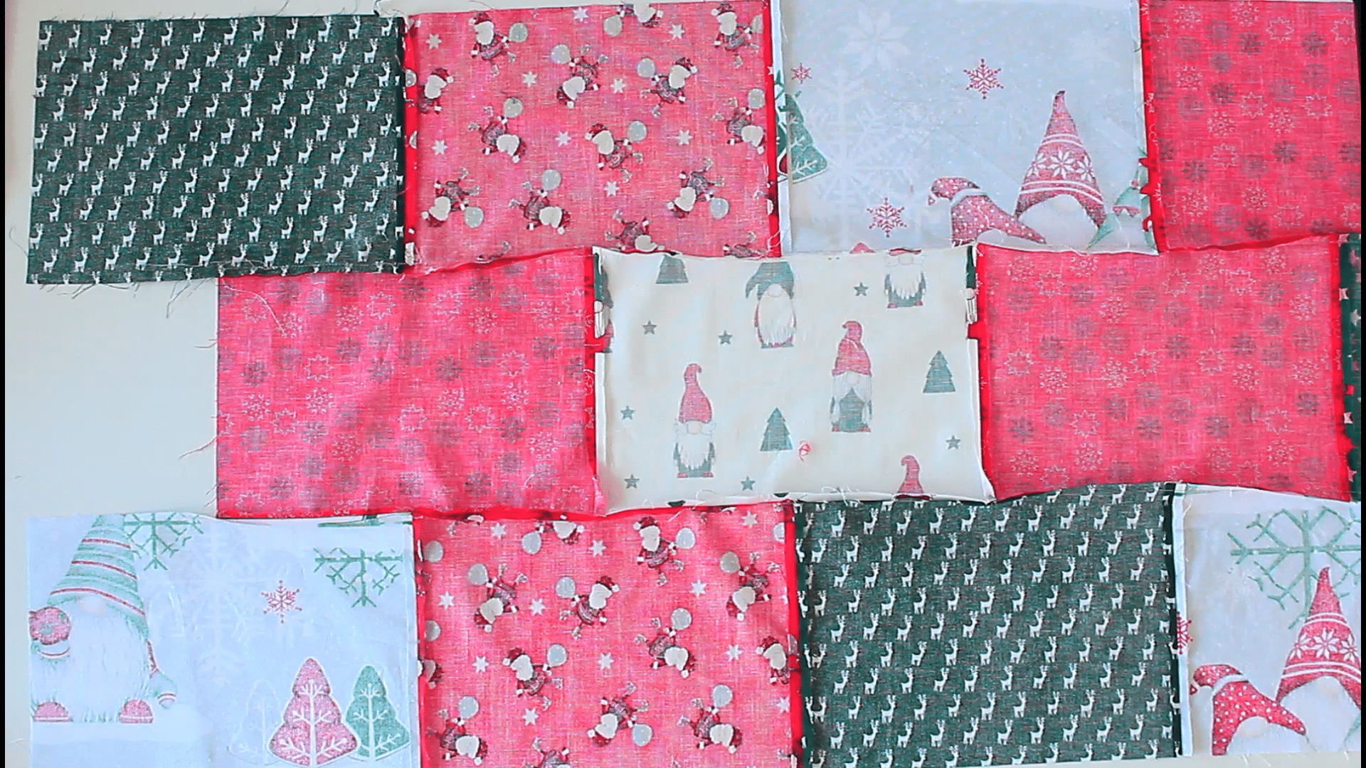 - Next, it's time to arrange the blocks in 3 rows and mix and match the fabrics until you reach the desired pattern.