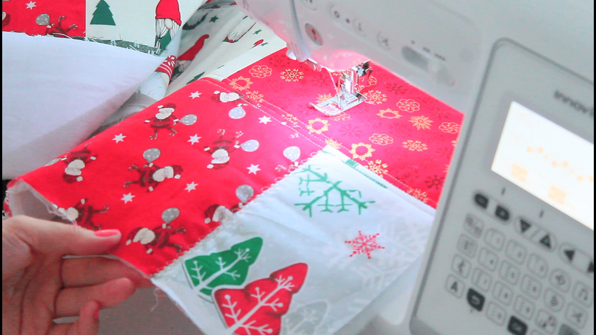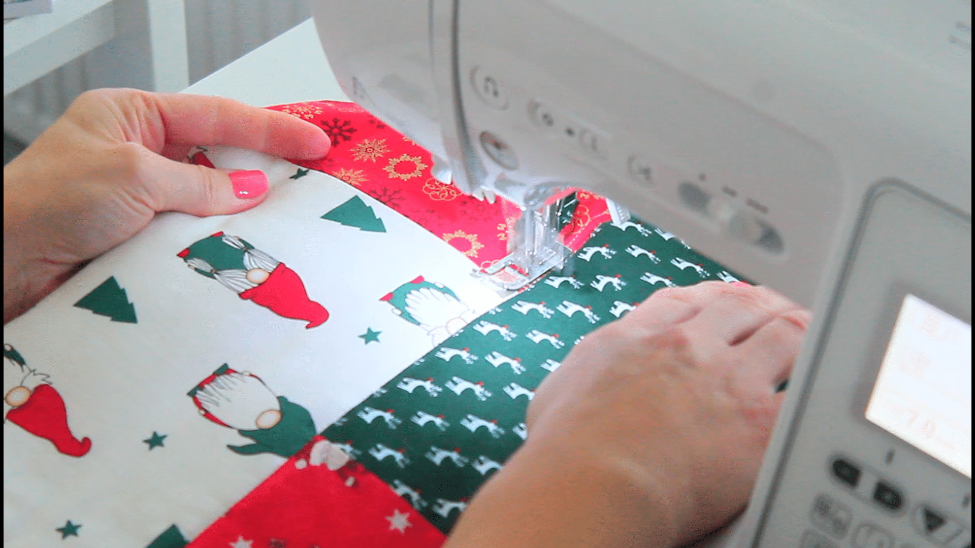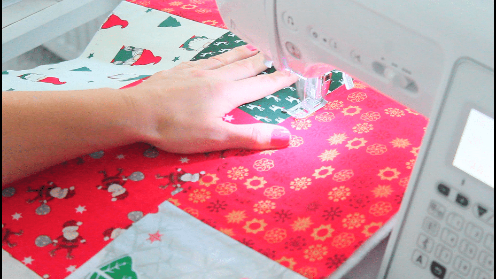 Another thing that will make quilting this table runner easier is using a wider bias binding. And if you don’t manage to sew it perfectly, you can always cover the stitches with an embroidery design or other decorative stitches. These are the perfect embellishments for a festive table runner anyway!