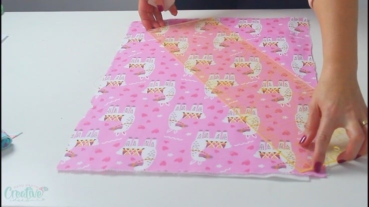 - With your fabric marker and quilting ruler, mark lines onto the fabric on the diagonal, 2″ apart. Repeat on the opposite direction to create rhomboid shapes all over your fabric panels.