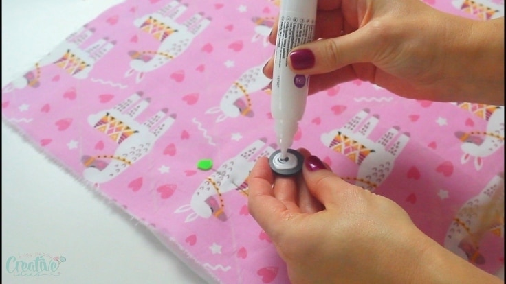 - Apply glue to one magnet and slide it under the inner fabric, right where you marked above. Press the fabric onto the magnet and allow the glue to dry before moving to the next step.