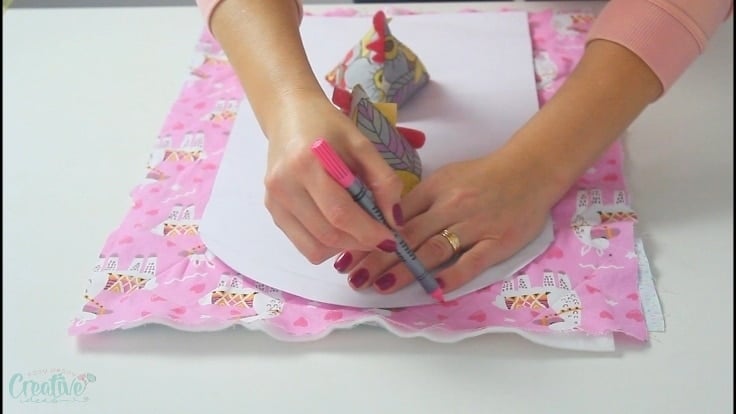 - Place the pattern over the wrong side of the fabric, centering it, and trace it onto the fabric then cut out.
