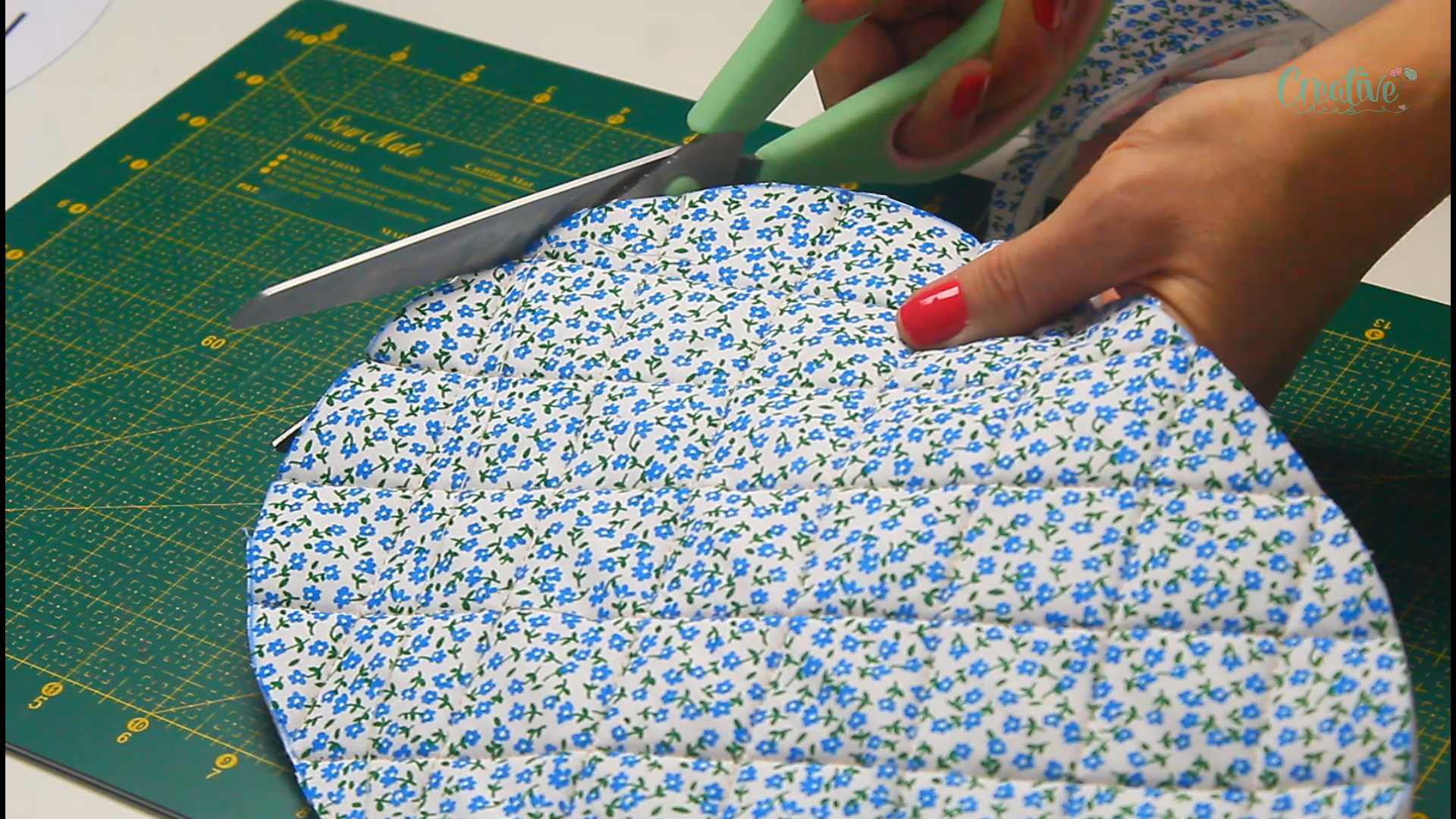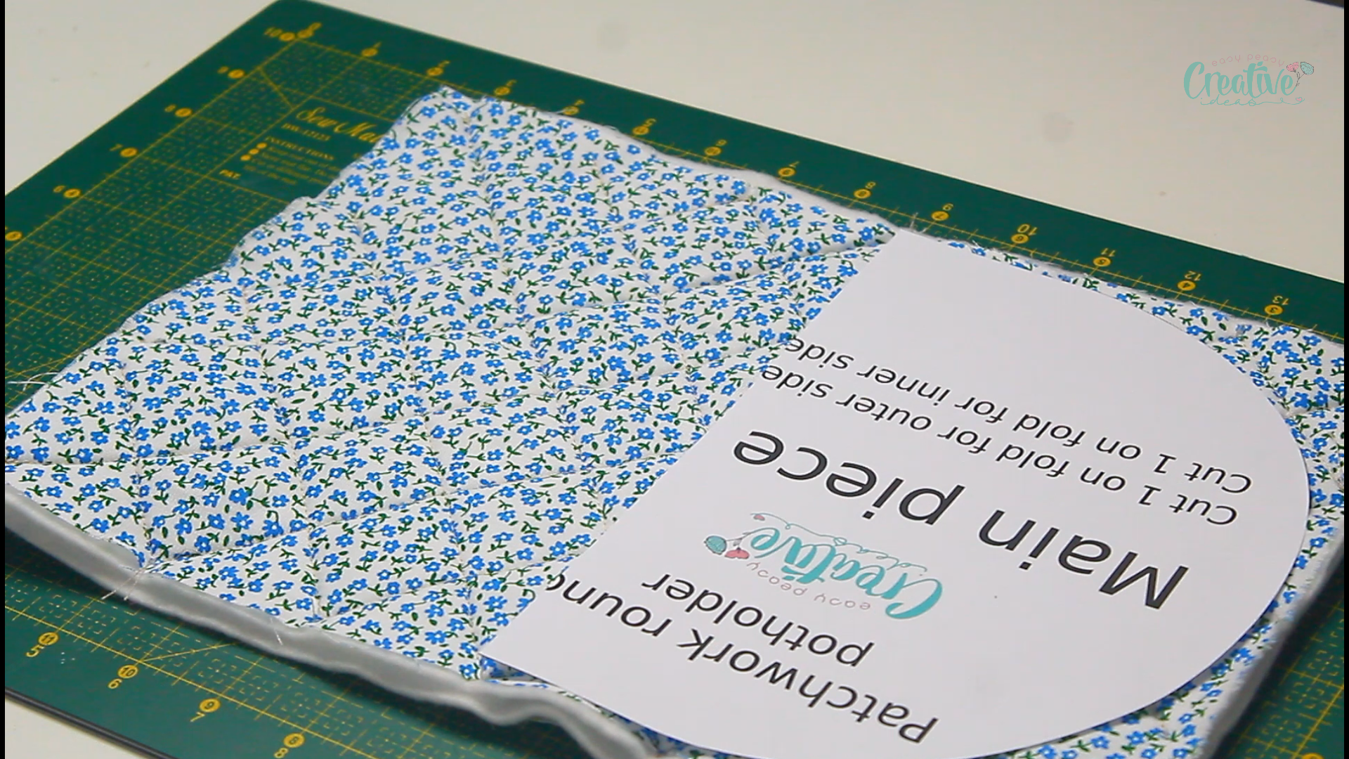 - Transfer the pattern onto the quilted potholder and cut out.