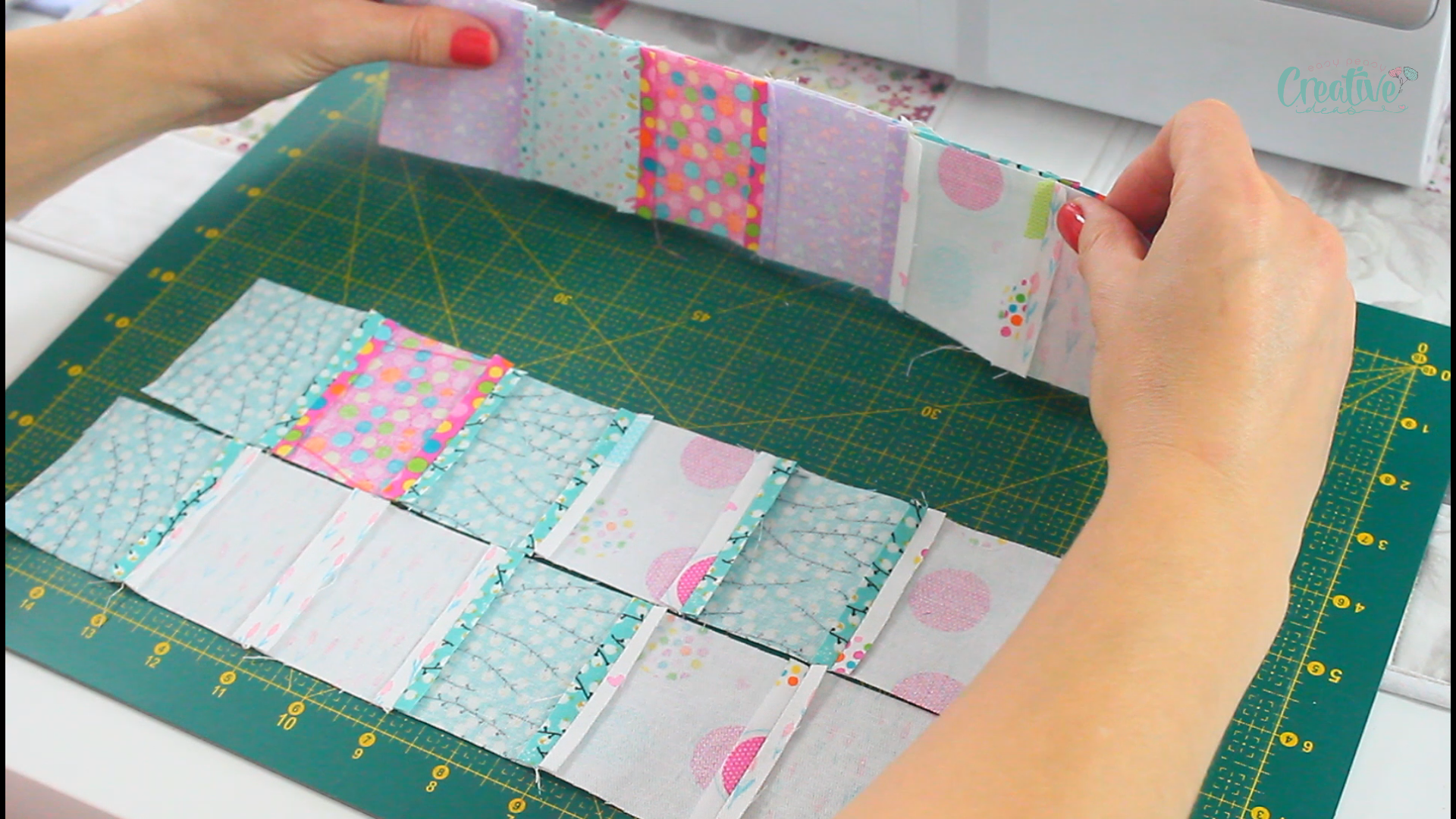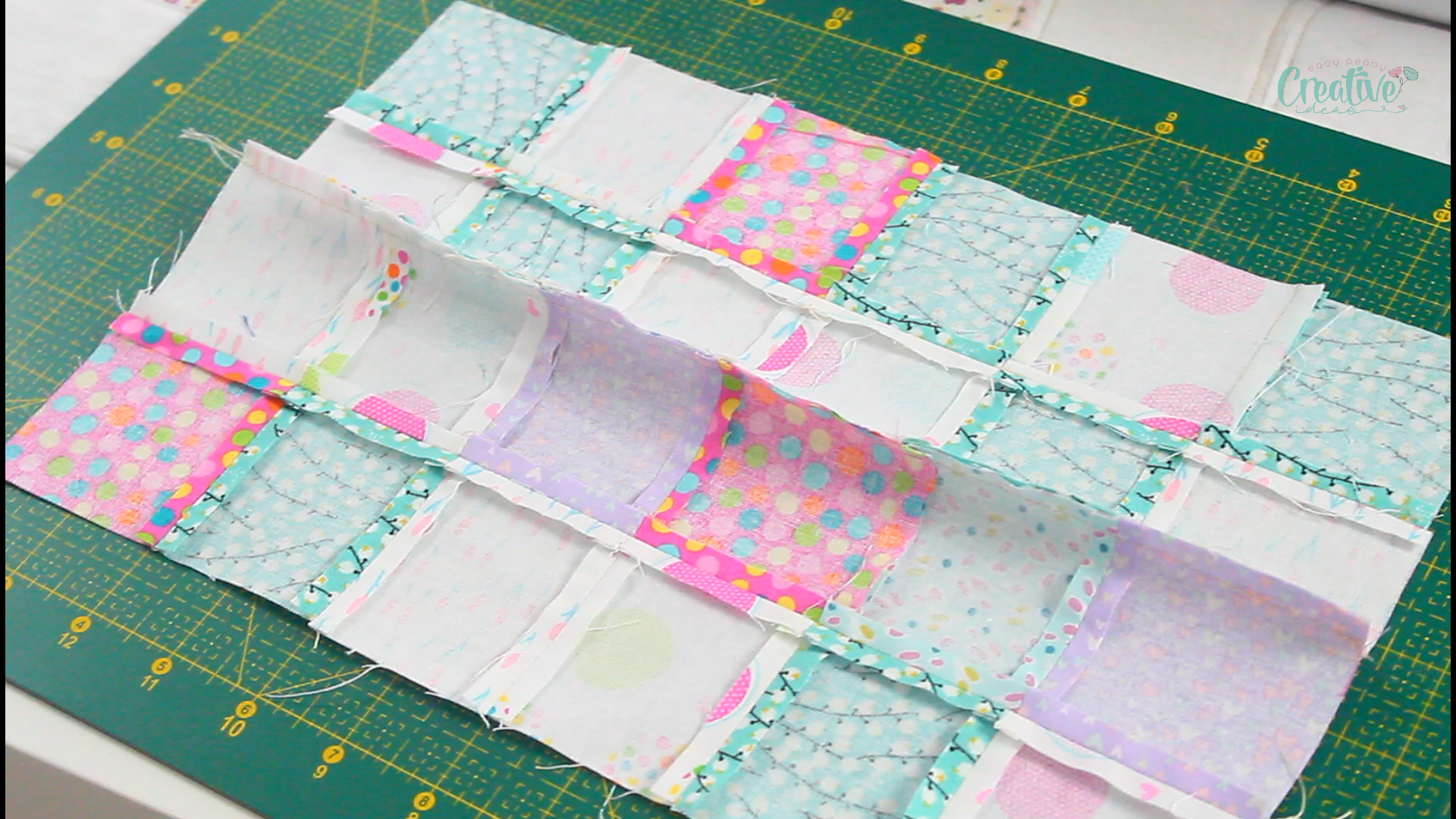 - Once the rows are formed, match them in pairs, right sides together to form the patchwork panel.