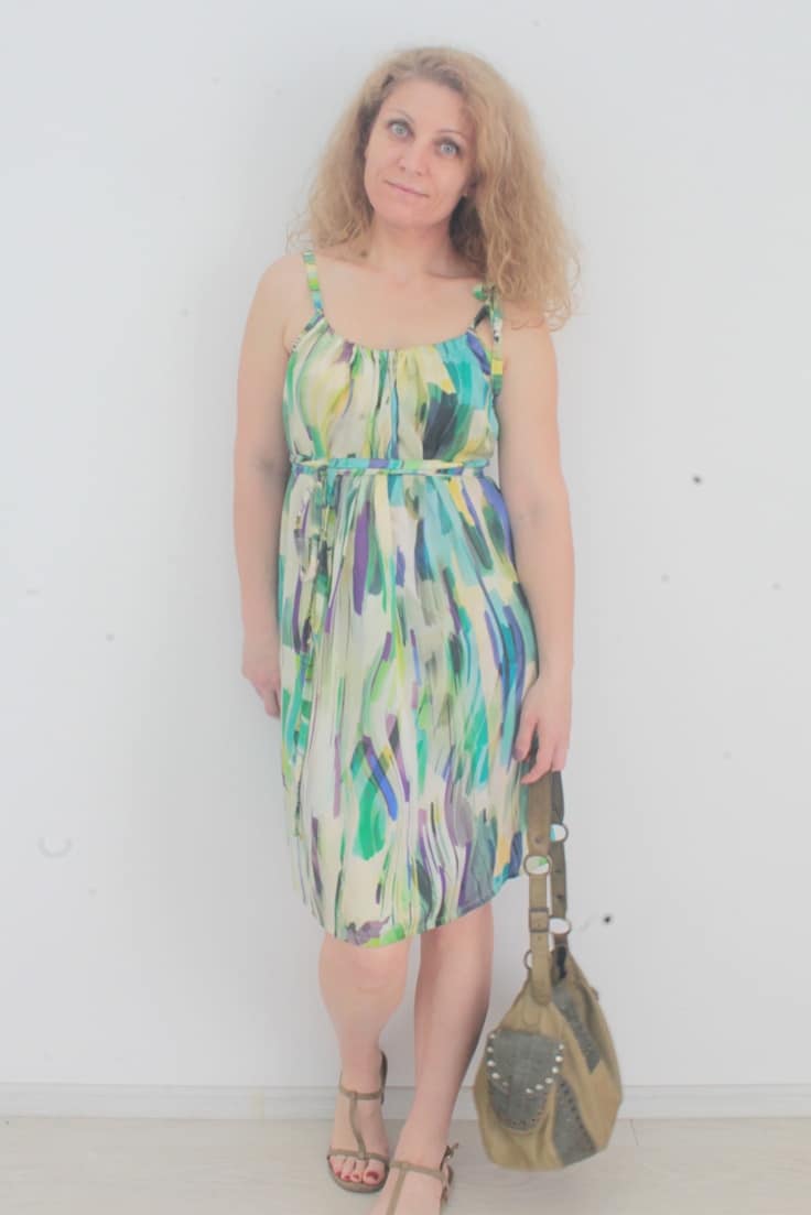 This simple pattern is for a v neck casual dress but if you’re more experienced you can always turn it into something more sophisticated, for a formal gown. I also made my v neck dress pattern with 3/4 sleeves which you can either remove or make longer, depending on your style, the fabric choice and season you’re planning to wear this dress in.
